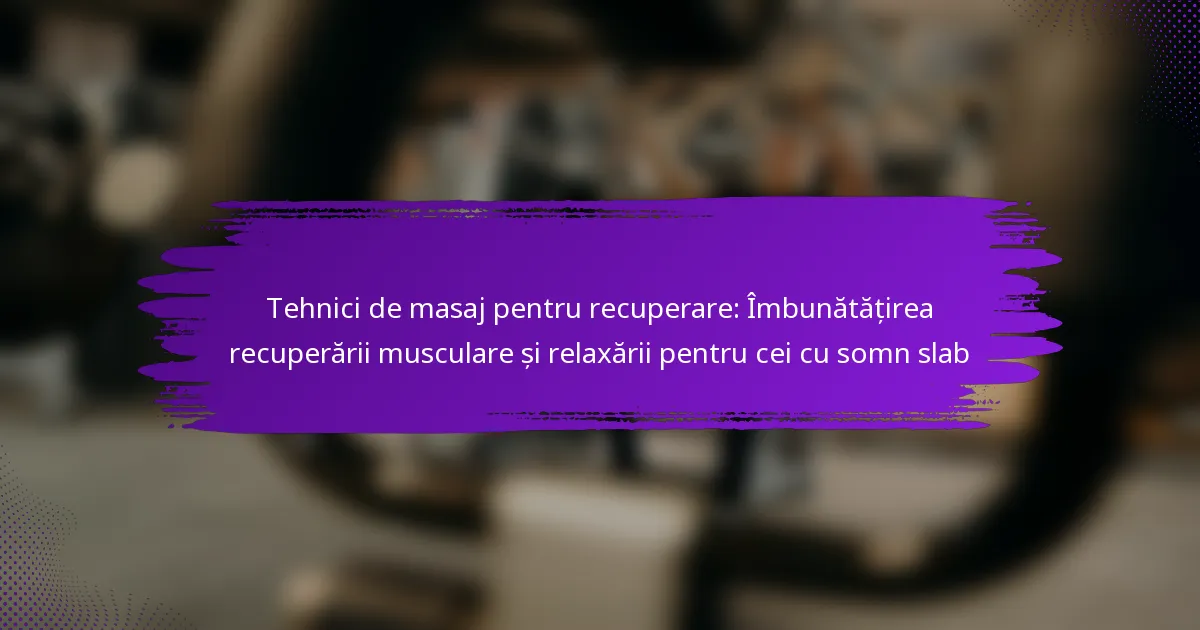 Tehnicile de masaj joacă un rol esențial în îmbunătățirea recuperării musculare și promovarea relaxării, în special pentru persoanele care se confruntă cu probleme de somn. Prin ameliorarea tensiunii musculare și îmbunătățirea circulației, aceste tehnici nu doar că reduc disconfortul, dar creează și un mediu liniștitor care susține o calitate mai bună a somnului. Alegerea metodei de masaj potrivite poate avea un impact semnificativ asupra obiectivelor de recuperare și bunăstării generale.